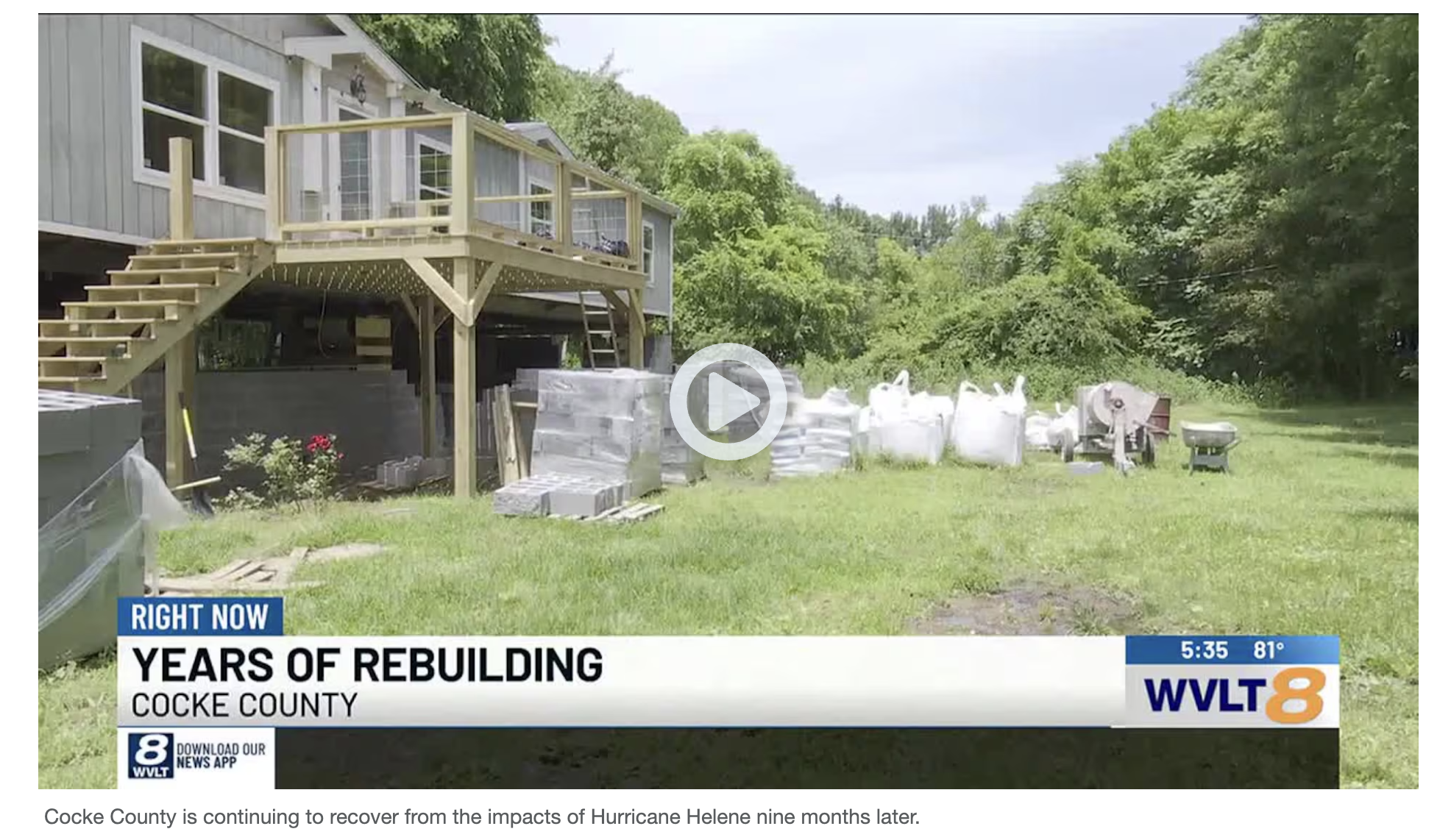 A Segment on WVLT8 about Cocke County’s recovery from the damage of Hurricane Helene. https://www.wvlt.tv/video/2025/06/10/cocke-county-long-road-full-recovery-after-impacts-helene